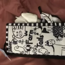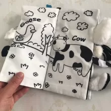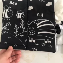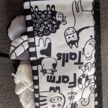 Let your baby physically feel and be attached to a fun story with this exquisite, unique storybook experience. Each page features recognizable animals with labels to allow your child to build his or her cognitive skills and animal recognition. The black-and-white nature of this storybook also aids in stimulating visual development.