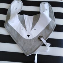 These products are not only adorable but are of great quality! The bibs are made out of great material and fit perfectly! Very soft and durable. The pacifier clips are great! The metal clasp is very strong and doesn't slip off easily like some do (very important when you have twin boys constantly trying to steal each other's binkies! haha!)