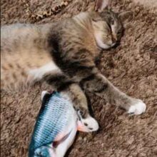 Since opening this toy, my cat has refused to put it down. He has spent literal hours just carrying it everywhere with him and watching it until the battery finally died and he lost interest. Luckily, the fish has a rechargeable battery so I just plugged the fish in overnight and it was as good as new in the morning. He likes to carry the fish everywhere with him, it even came bird watching on the windowsill with him. The motor to the fish isn’t loud but it isn’t silent either, the fish has an on/off switch so I make sure to turn it off at night time while it’s recharging so that I’m not woken up by a stuffed fish flapping on my face. Definitely a fun toy for cats and it comes highly recommended by my cat.