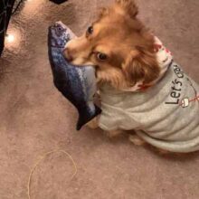 I gave Hope the fish cover while charging the battery at my computer! She enjoyed playing with it and I think it helped her feel comfortable with it on the initial introduction. The part I appreciated most about it was that she spent time playing in the living room it while my boyfriend and I were sleeping. We usually keep her in the room with us because she tries to jump places she’s not allowed, but she had her fill of the fish, and then came and napped with us. It keeps her company! She’s a little co-dependent, so I think it’ll help her when we go back to work. I like to imagine when she played with it without the motor, and then I put the motor in, she was mind-blown and wondered how it suddenly came to life X)