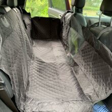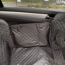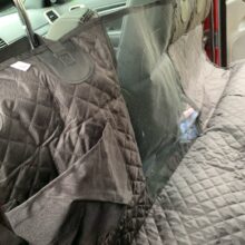 Our Dog Seat Cover helps you keep your backseats covered with this snap-and-go seat cover that protects your vehicle from dog hair, scratches, and drool.