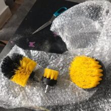 How have I lived without this? I used the heads to clean my shower and my cabinet doors in my kitchen. I am using different heads for different areas of the house. My kitchen cabinets are painted and I was scared that the power of the drill with the coarse brush would take off the paint but it only happened once. It was my fault. I pushed way too hard and the drill went on its side and the base of the brush went on the cabinet. Oops. I love these. You need to buy.
