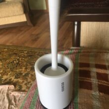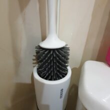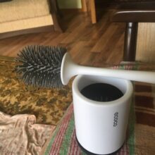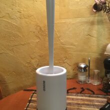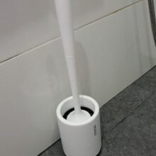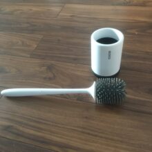 Our brush in total measures 16” x 3.5” (410mm x 90mm), meaning it doesn’t take up a lot of space. No bulky square holders like with traditional, ordinary toilet brushes.