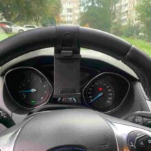 Just got this and used today for an impromptu Zoom call from my car. The strap fits tight around the wheel, I had it all the way at the top and put the charging phone into it, which was at eye height straight on. Went an hour and was able to use the touch screen with barely any movement. This is perfect for what I needed and I’m so happy it was such a small, simple and inexpensive tool.