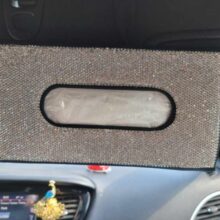 I purchased this to access my tissues easily while I’m driving and also dress up my pretty new Toyota SE sport edition! I Iove it! It’s even prettier in person. Super sparkly. Adjustable and easy to install. Very convenient. Easy to fill and holds a good amount of tissue! Terrific price!